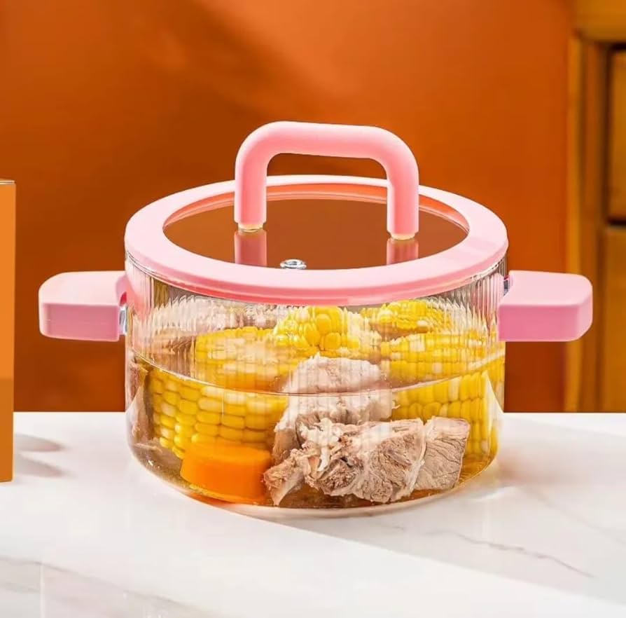 Cooking Glass Pot with Silicone Handle made from heat-resistant glass for safe, even cooking. Features a cool-touch silicone handle and clear lid for easy monitoring. Ideal for sauces, soups, noodles, and everyday meals. Durable, easy to clean, and stylish for any kitchen.