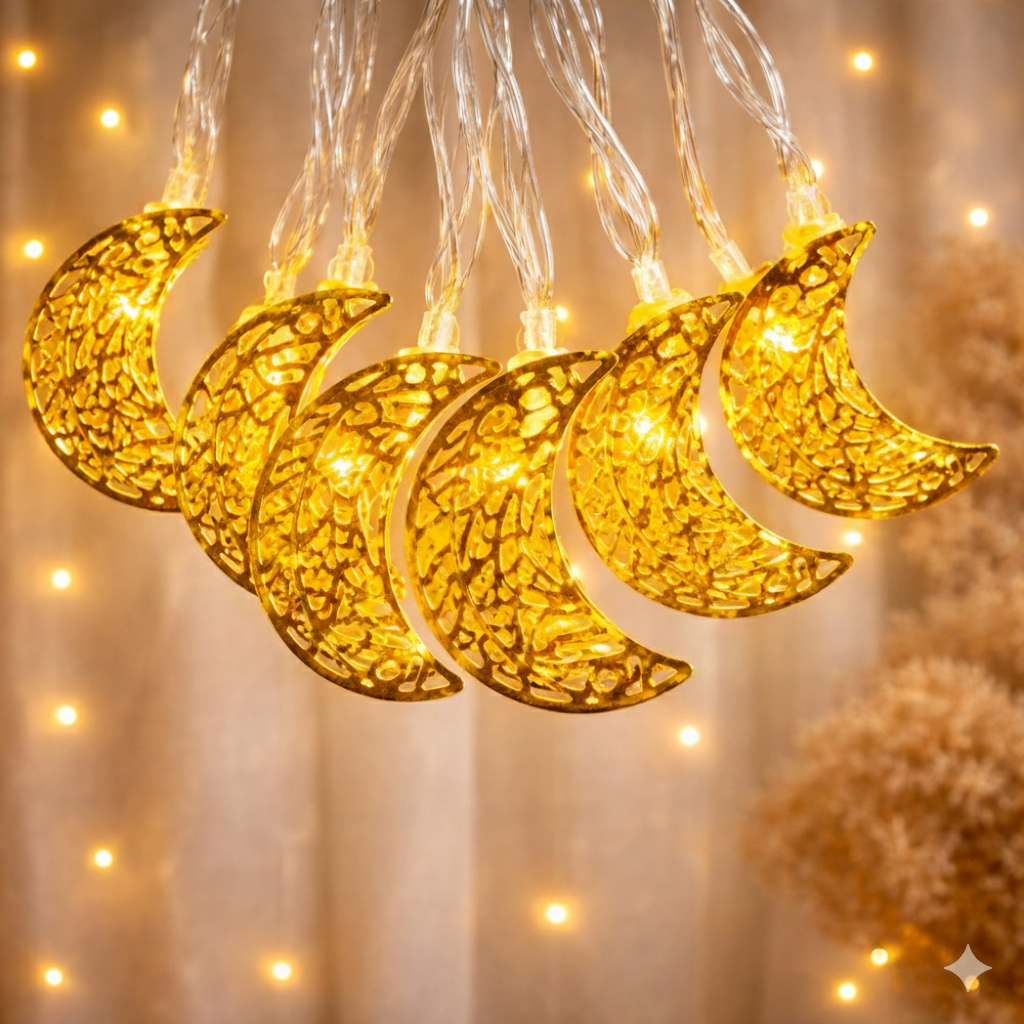 This led moon string light a charming decorative fairy light perfect for adding a cozy and magical glow to any space, featuring small led moon-shaped bulbs that create a warm and festive ambiance. battery operated for easy use anywhere without outlets, these holiday lights are ideal for parties, bedrooms, living rooms, or special events. lightweight, easy to hang, and durable, they serve as both a functional lighting solution and a stylish decoration, bringing a whimsical touch to celebrations and everyday home decor.