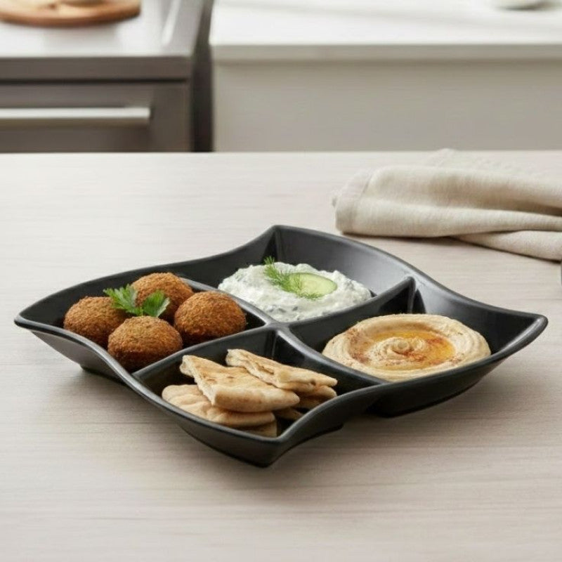 - 4 Partition Snack plate, Party Snack Tray, Smart Serving Plate, Kitchen Serving Tray 4 Partition Snack plate, Party Snack Tray, Smart Serving Plate, Kitchen Serving Tray