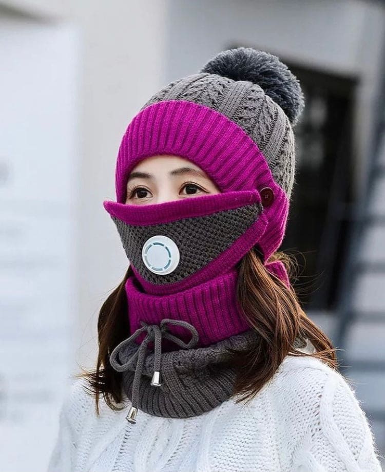 Set Of 3 Scarf Cap Hat, Neck Warmer Winter Hat, Women Ladies Skellies Beanies Warm Fleece Cap