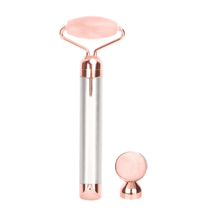 New 2 In 1 Flawless Contour, Flawless Jade Roller, Micro Vibrating Facial Roller And Massager, Automatic Facial Vibrate Face Massager, Electric Pink Rose Quartz Facial Massager, Vibrating Face Body Massage Tool, Skin Care Lift Tightening Women Beauty Bar