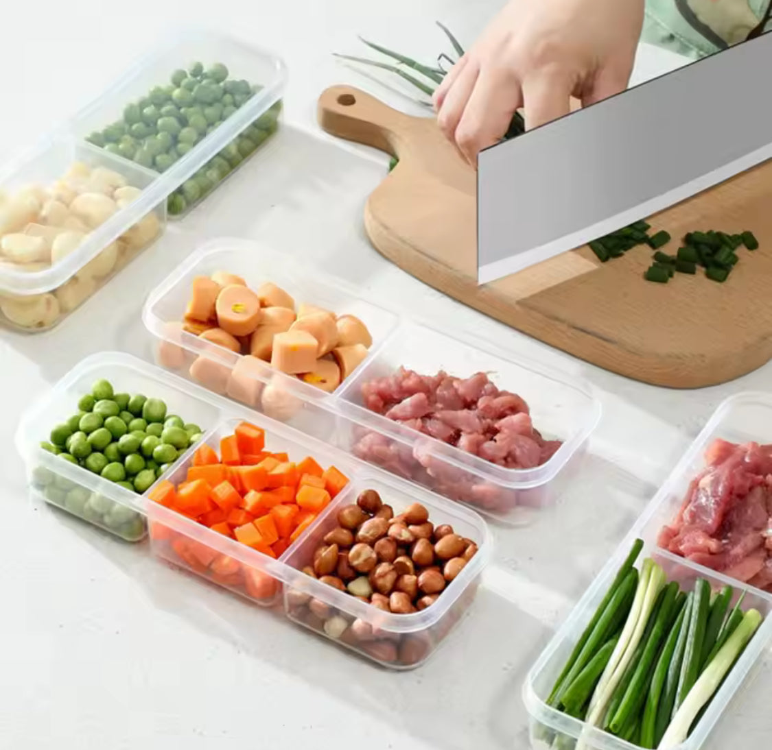 This 3 compartments meal preparation box with lid is a rectangular multi grid storage container made from transparent plastic, perfect for organizing meals, snacks, or leftovers in the refrigerator. the airtight sealing lid keeps food fresh and prevents spills, making it ideal for meal prep and portion control. durable, reusable, and easy to clean, this practical storage box is a convenient addition to any kitchen.