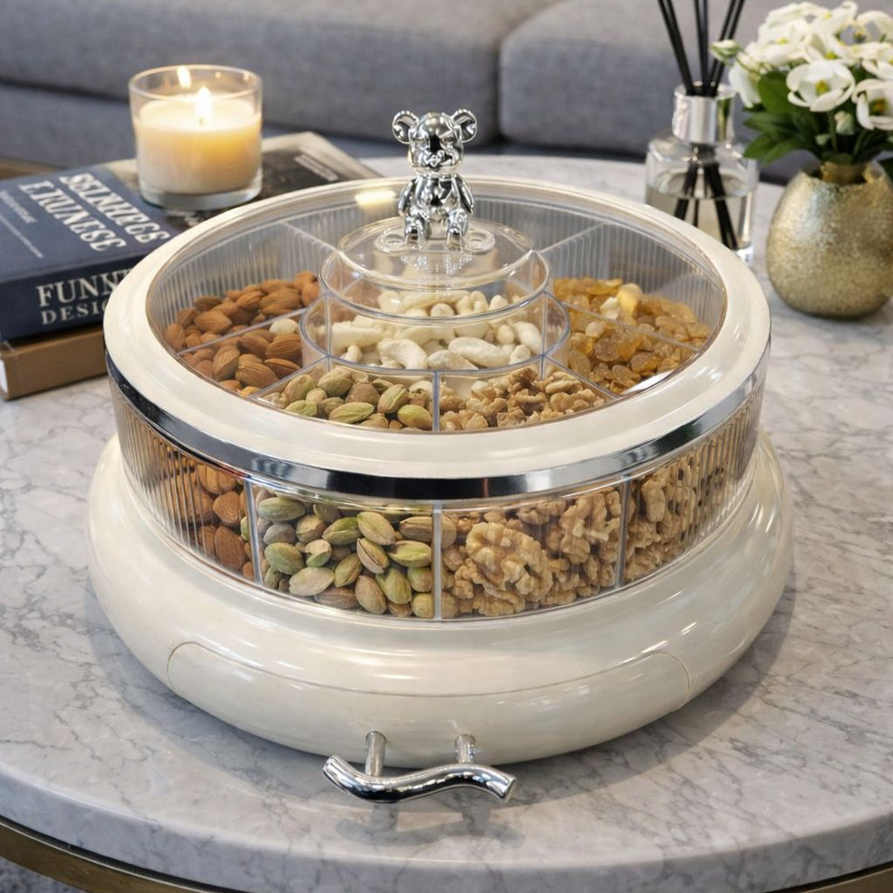This bear knob dry fruit bowl is a charming nordic style candy and snack serving tray designed to make everyday snacking feel special. Featuring a cute bear knob on the lid, this elegant organizer keeps dry fruits, candies, nuts, and small snacks neatly stored and easy to serve. Its clean, minimalist design fits beautifully in modern homes, while the practical compartments help keep different snacks separated and fresh. Perfect for coffee tables, parties, or family evenings, this stylish snack organizer adds both function and a touch of warmth to your home dΓ©cor.