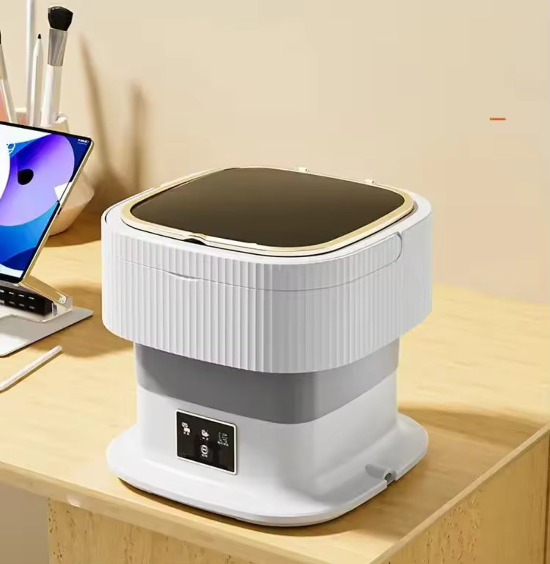 This lightweight portable washing machine is designed for easy and quick washing of small clothes anywhere. The bucket style design uses turbo washing power to clean items like underwear, socks, baby clothes, and T-shirts efficiently. It is collapsible for simple storage, saves space, and is easy to carry, making it ideal for travel, dorm rooms, camping, RVs, and small apartments. Simple to use and convenient, it is a practical solution for everyday small laundry needs.