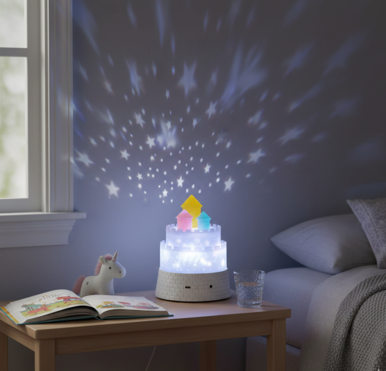 This kids unicorn castle projector lamp is a magical LED night light designed to turn your child’s room into a dreamy galaxy world, featuring colorful castle and unicorn inspired design with soft glowing lights and beautiful star projections on walls and ceiling. This kids room decor lamp comes with a remote control to easily change colors, lighting modes, brightness, and projection effects, making bedtime fun and calming for children. Perfect as a night lamp, sleep light, or decorative projector, it creates a soothing atmosphere that helps kids relax and feel safe at night. Ideal for bedrooms, playrooms, birthday gifts, and nursery decor, this galaxy star projector lamp is energy efficient, kid friendly, and adds a charming fairytale touch to any child’s space.