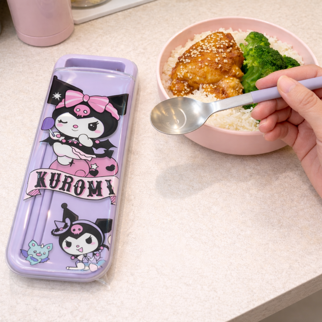 - Kuromi Portable Cutlery Set, Travel Spoon & Chopsticks Case, Cute Cartoon Design Cutlery Set Kuromi Portable Cutlery Set, Travel Spoon & Chopsticks Case, Cute Cartoon Design Cutlery Set