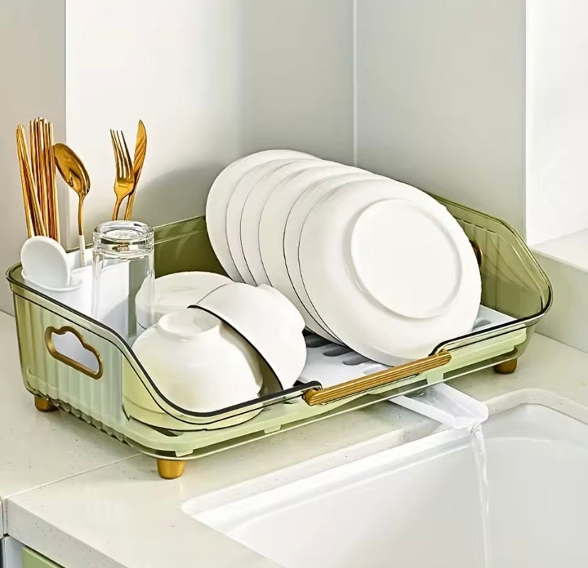 Upgrade your kitchen with this Multifunctional Dish Washing Rack, designed to keep your countertop clean, dry, and organized. Made with durable, high quality material, this dish drying rack with drainer allows water to flow directly into the sink, preventing water buildup and keeping your kitchen neat. Its space saving design fits perfectly beside the sink and offers ample room for plates, bowls, cups, and cutlery. The built in utensil holder keeps spoons, forks, and knives neatly arranged, while the sturdy base ensures stable use. Ideal for everyday use, this kitchen sink rack combines practicality with a modern look, making dishwashing easier and more efficient.