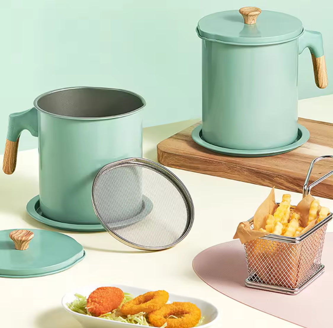 This 1.4 liter stainless steel kitchen oil filter pot is a simple and practical tool for everyday cooking, designed to safely collect, filter, and store used cooking oil with ease. It features a fine mesh strainer that removes food particles, helping keep oil clean and reusable, while the durable stainless steel body resists rust and odors. The secure lid helps prevent spills and keeps oil protected from dust, making it suitable for countertop or cabinet storage. Easy to use and clean, this manual grease oil container works well as an oil separator, oil trap, or storage can, making it a useful kitchen tool for home cooking and frying.
